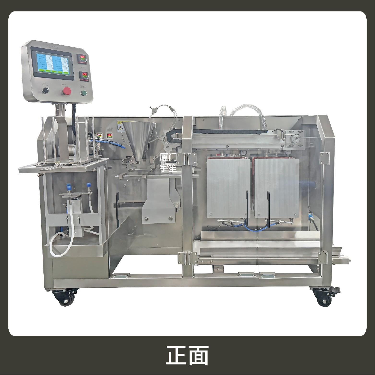 2、包裝流程全自動,可抽真空(真空度可達(dá)到-0.1Mpa)??筛鶕?jù)充填物料的性質(zhì)選配不同的下料結(jié)構(gòu)。